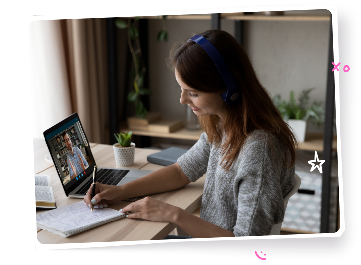 Spotykamy się online 1:1 – Ty i lektor/lektorka. Ty decydujesz, na czym się skupiamy: rozmowy, gramatyka, pisanie, przygotowanie do egzaminu.